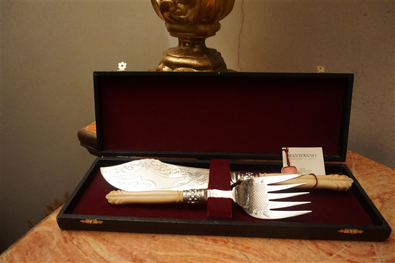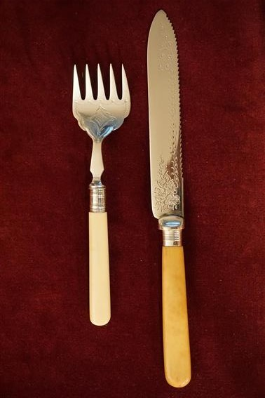 Set posate in sheffield con decori e manico in osso. Periodo Vittoriano. Offerta speciale: 160,00 Euro anziché 260,00 Euro