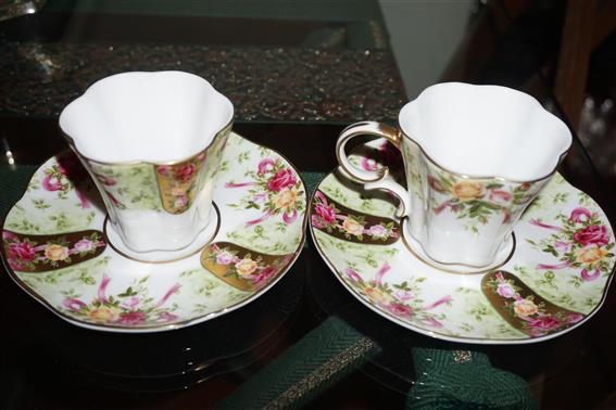 Coppia tazze con piatti in porcellana decorata. Offerta speciale: 70,00 Euro anzichè 150,00 Euro