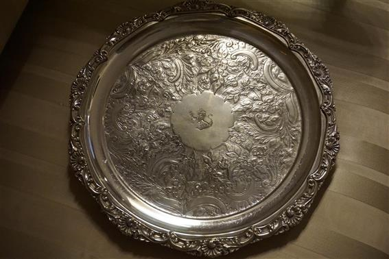Centro tavola tondo con piedini in sheffield. Offerta speciale: 450,00 Euro anziché 900,00 Euro