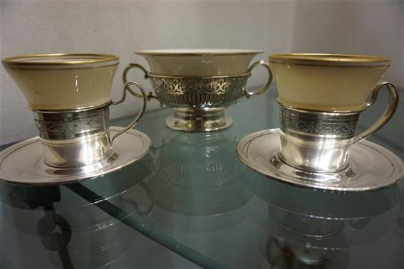 Tazza con piattino in porcellana e argento 925% per i 25 anni di matrimonio. Offerta speciale: 80,00 Euro anziché 140,00 Euro