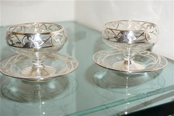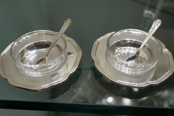 Sottopiatto quadrato in cristallo e argento 925% più posate in argento 800%. Offerta speciale: 350,00 Euro anziché 550,00 Euro