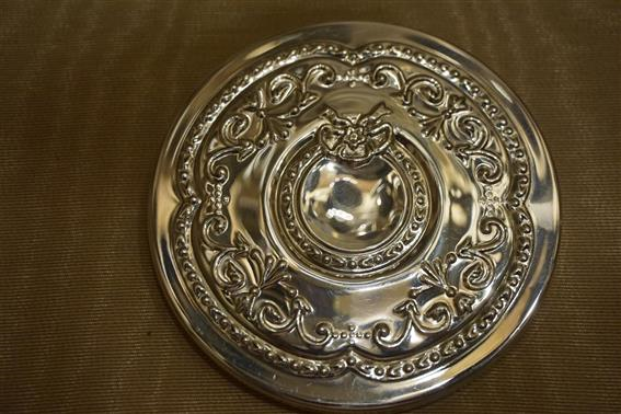 Cofanetto tondo per manicure con copertura in argento 925%. Offerta speciale: 95,00 Euro anziché 150,00 Euro